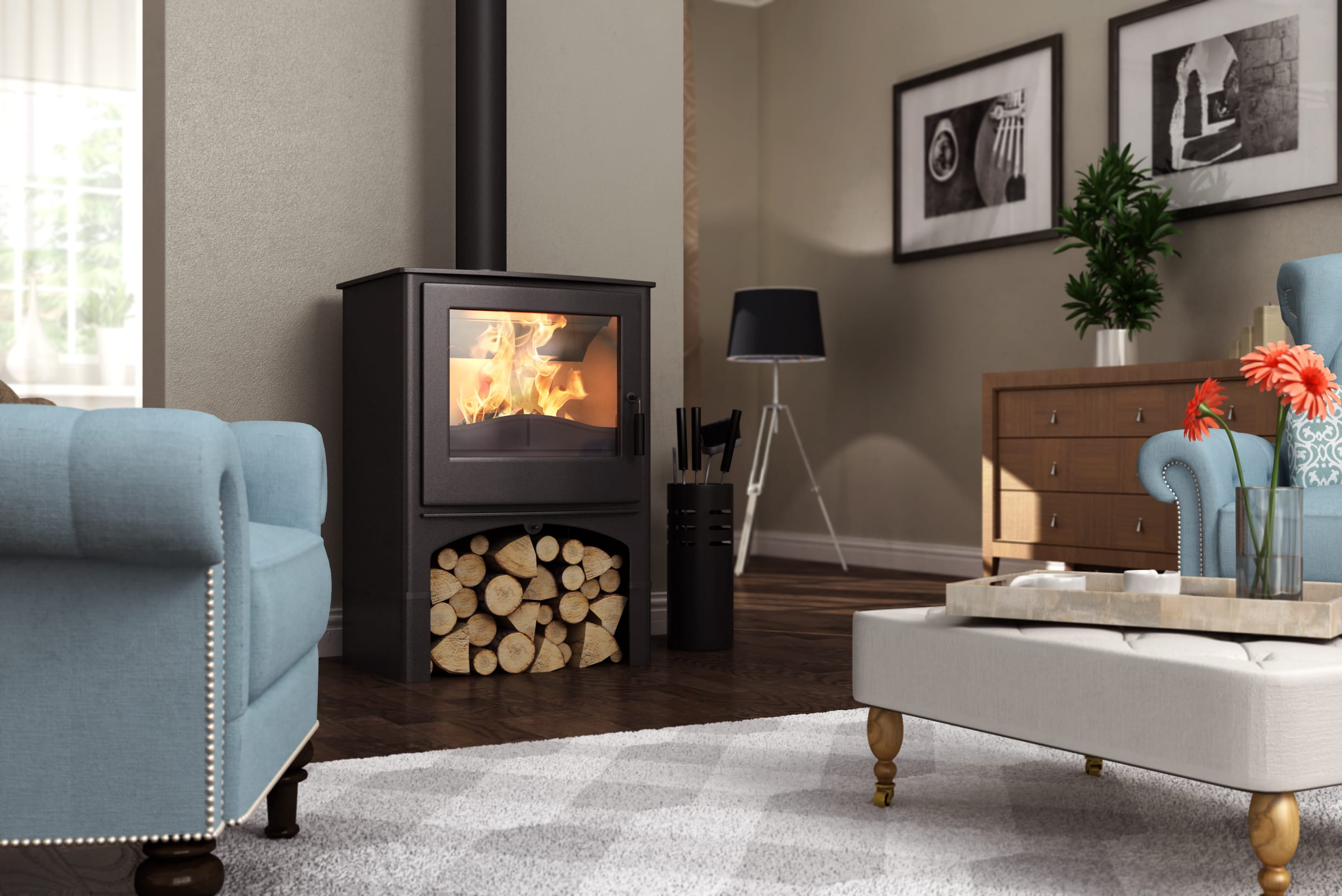 Cottage har en stor brännkammare vilket gör att du har möjlighet att elda med en hög effekt och där en stor del går till det vattenburna systemet. Det gör att hela ditt hem värms upp utan att temperaturen i vardagsrummet blir för hög.